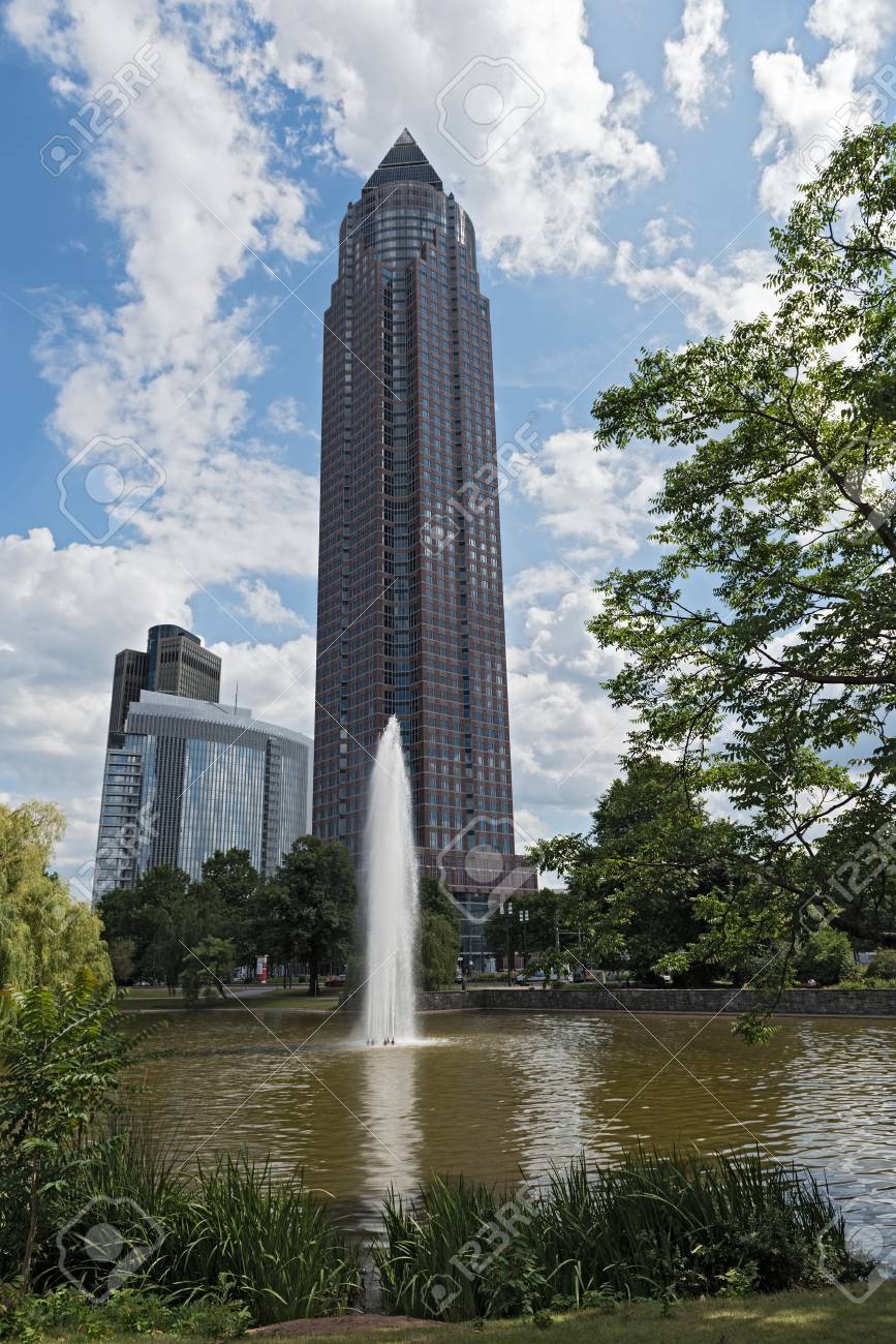 Friedrich Ebert Facility With Fountain And Messeturm Frankfurt