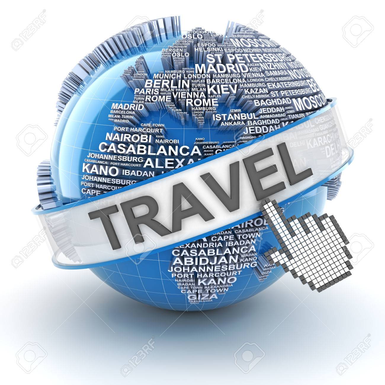Reisen Globus Namen Der Wichtigsten Stadte Der Welt Gebildet 3d