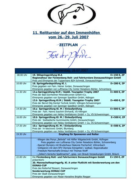 11 Reitturnier Auf Den Immenhofen Vom 26 29 Juli 2007 Zeitplan