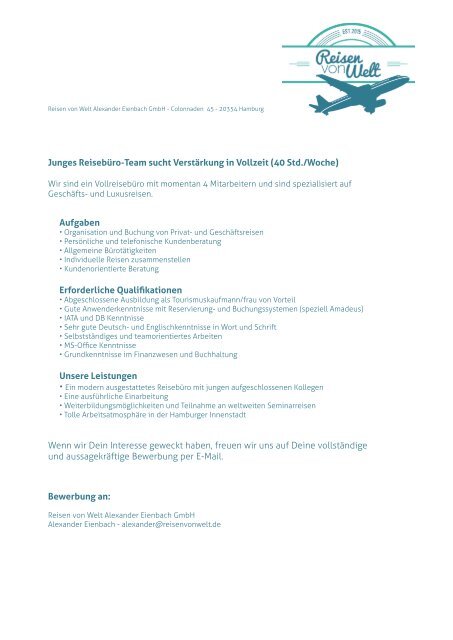 Dringend aufgaben praktikum im reiseburo. Ubernachtungen und sonderveranstaltungen erfolgt direkt im reiseburo mit speziellen buchungs und reservierungsprogrammen uber computer. Juli 2007 als reiseverkehrskauffrau bei dem reiseburo sonnenstrahl ihrem freundlichen reiseburo beschaftigt.
