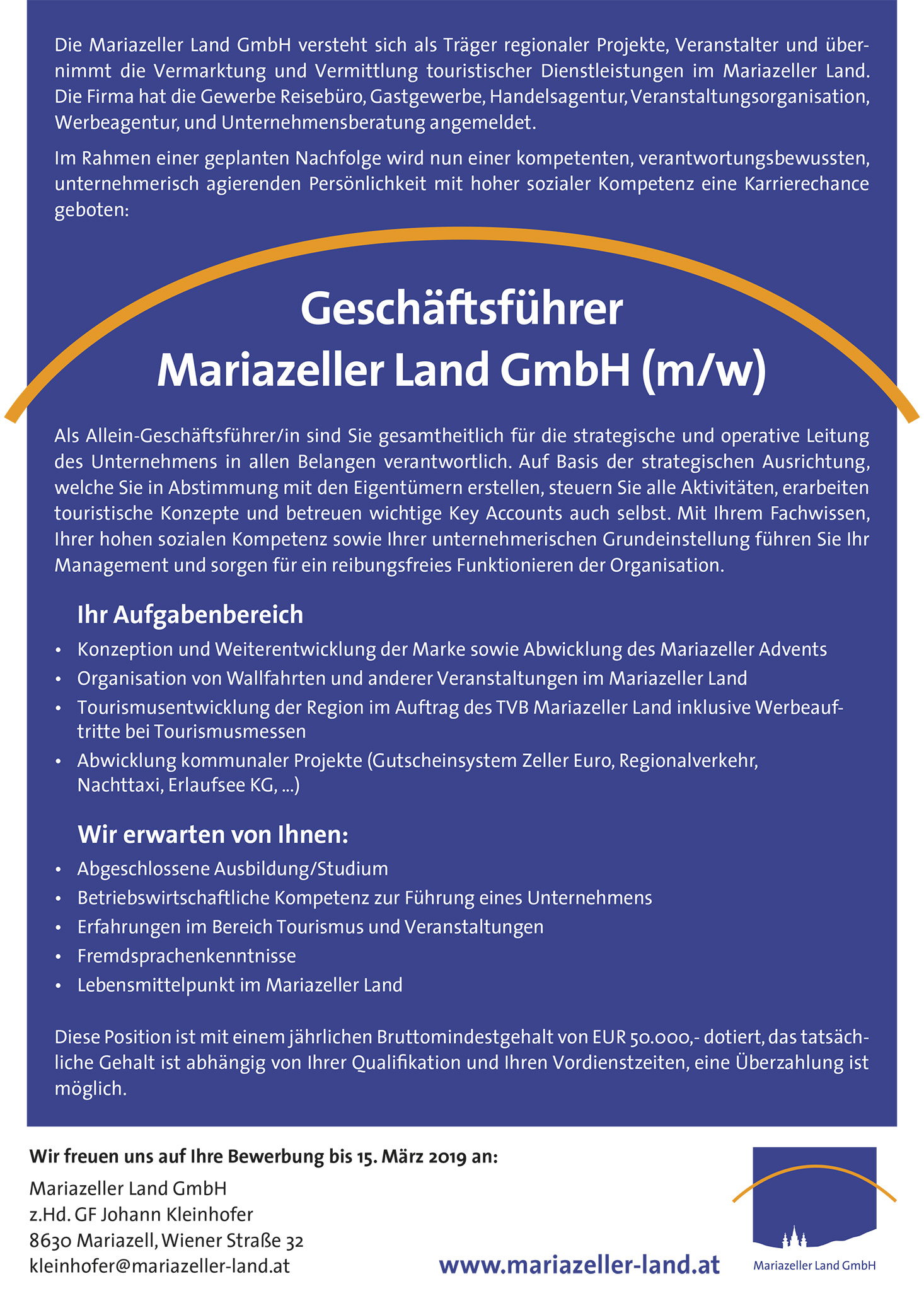 Stellenausschreibung Geschaftsfuhrer Mariazeller Land Gmbh M W